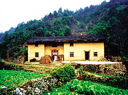 横阔式的房子,一般建在人口聚居的河谷平坝。三间房横排,左右房开窗,作为卧室和工具室;中间正屋开大门,作为厅堂。屋后设厨房、畜栏鸡舍,有的耳房作厨房,禾仓有的在屋内,有的则在屋旁另建。