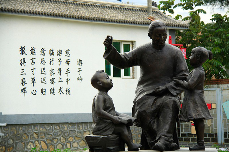 村子的胡同干净整洁,精心设计的院墙上分别绘制着中国古代《二十四孝图》浮雕、新编《二十四孝图》彩绘图、国学名言名句砖雕以及各种助人为乐儿童图画。