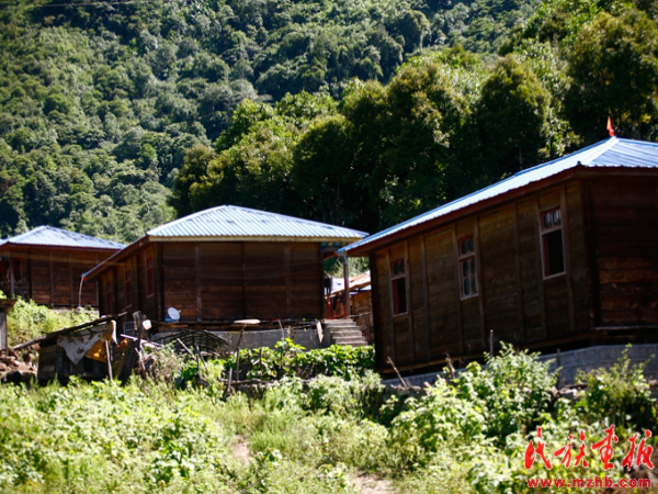 走出民俗馆,我们看见周围是统一规格的绿色铁皮屋顶、木墙的房屋,这是政府出资统一设计、修建的珞巴族新居。每户屋顶上都插有一面国旗,在蔚蓝天空下迎风飘扬。我们走进一户村民家,院子里停放着柴油车,摩托车。还有就是每家院子里都有的电视地面卫星接收器。走进客厅,几个孩子在聚精会神地看电视。热情的主人告诉我们,这里能收到45个频道的电视节目,其中还有1个民族语言频道。