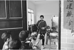 2012年,国家实施义务教育阶段学生营养餐计划,因学生少,学校没有配备专门的食堂人员,吴浪就让妻子回乡义务给孩子们煮饭,直至2015年底,杨胜云才拿到每月1200元的工资。