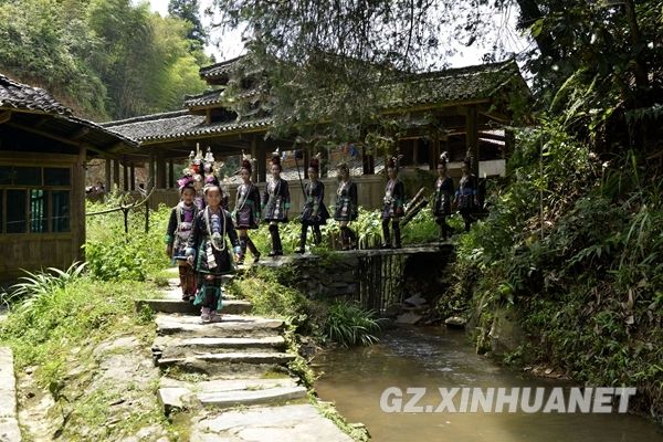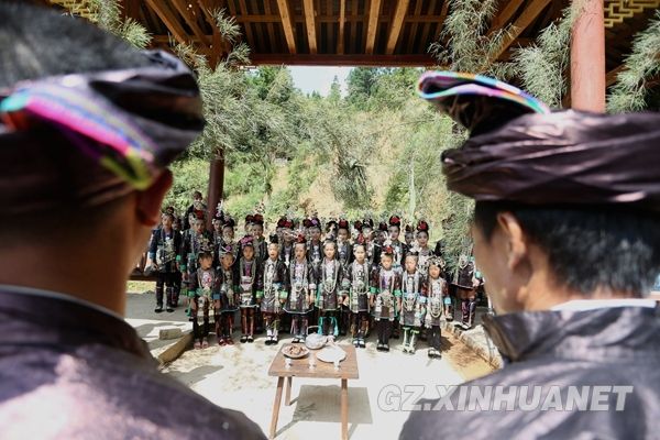 宰荡侗寨 侗族同胞唱拦路歌迎接前来吃相思的客人。(杨成利 摄)