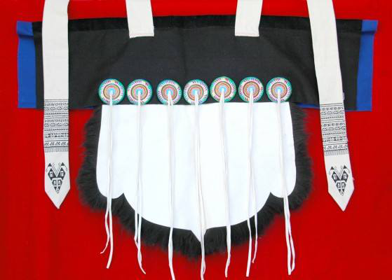 缀绣花圆布盘羊皮女披肩,主要流行于云南省玉龙纳西族自治县和丽江古城一带,是当地纳西族妇女的传统背饰,...