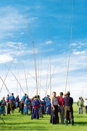 有些人和事是蒙古族所独有的:迄今仍竖写的文字,综合了实用与建筑学美学原理的蒙古包,集合力量与技巧的套马,欢乐盛会那达慕,蕴含生存哲学的搏克,与国际象棋同理的蒙古象棋,好听的长调与马头琴,以万物崇敬为核心理念的宗教文化……事实上,能够让草原持久保持绿色的内因正是游牧文明的核心价值:和谐、包容、适度索取,乐观、智慧、坚韧向前。这些内涵可以从蒙古族的物质和精神生活包括那达慕中得到答案。
