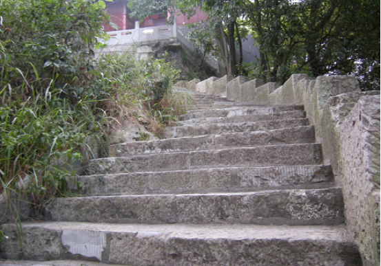冠山,位于贵州龙里冠山盆地(县城)东隅,岩山形似金钟扑地,古木参天,葱郁苍翠。明永乐七年(1409)始建的道教活动场所掩蔽其中,可谓“山不在高有仙则名”。在历史的长河中,虽然道教一去不复返,但其紫虚观主体建筑保存尚好,现列为省级文物保护单位,由主体建筑紫虚阁、左右厢房、前殿、山门、文昌祠组成二进院式古建筑群。主体建筑为木构穿斗式三重檐六角攒尖筒瓦顶,1989年迁入的文昌祠,为木构抬梁式歇山青瓦顶,带吻正脊,戗脊翘角卷草,石质柱础浮雕仙草、竹、梅、鹿等图案。西南两面有1936年题刻的“还我河山”、“巨灵一孹”等七方摩崖石刻。建筑物的形制、布局给人一种古朴、沧桑之感。登阁骋目,远山峻岭和鳞次栉比的楼房尽收眼底,让人流连忘返。