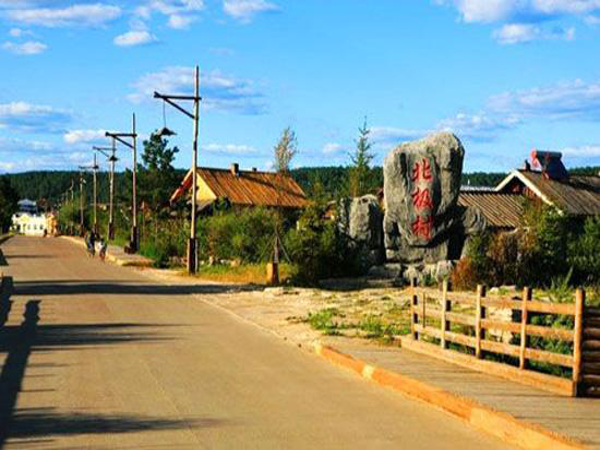 北极村于1997年开辟为北极村旅游风景区,成为全国最北的旅游景区。古风纯朴,静溢清新,乡土气息浓郁,植被和生态环境保存完好。每当夏至前后极昼发生时,午夜向北眺望,天空泛白,像傍晚,又像黎明。人们在室外可以下棋,打篮球,如果幸运的话可以看到气势恢弘,绚丽多彩的北极光。
