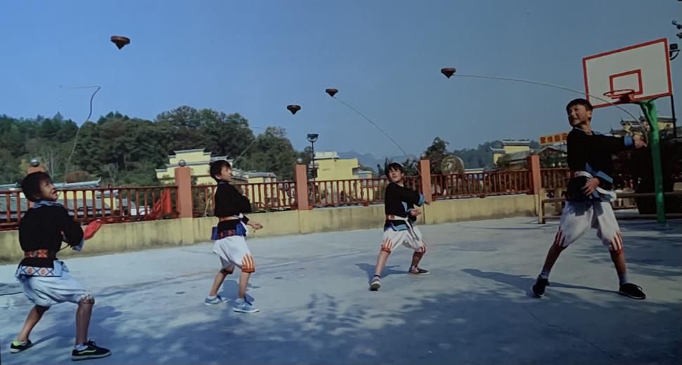 瑶族打陀螺(许觊佳摄于贵州省民族博物馆)