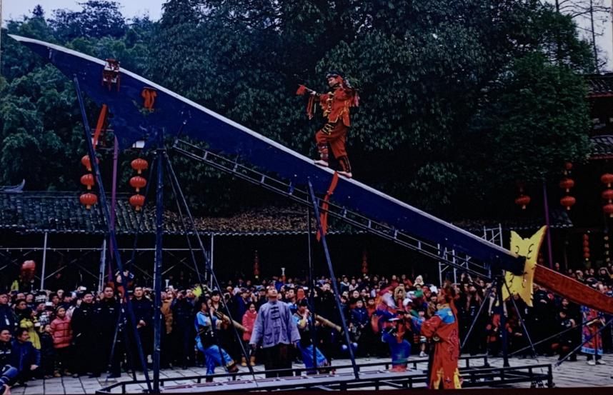 贵州有一个流传千年的绝活——赤脚走大刀,还有一个流传数百年的舞蹈,赤脚走枪尖。