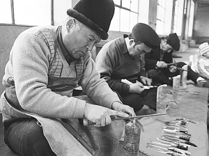 最后一道工艺,在过去算是秘密,现在已经众所周知,就是用油煮、蜡磨的方法使小刀光亮,不生锈。