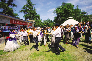 6月17日,在胡斯马义·沙胡马尔登陆南北极纪念碑揭牌仪式后,哈萨克族群众自发地跳起了欢快的舞蹈,而后大家又欢聚在毡房中,畅谈各民族团结和发展的问题。