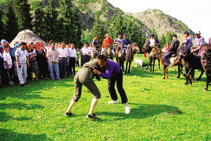 座谈会结束后,大家又来到新地沟草原,举行哈萨克族民间传统体育活动,哈萨克族群众纷纷参加姑娘追、摔跤、叼羊、赛马等活动。一时间人声鼎沸,欢歌笑语,草原上呈现出一片欢悦的景象。