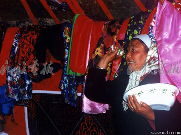 新婚之夜是年轻人的天下。哈萨克族人人喜爱唱歌。对歌是当晚的主题,在美妙的歌声中,一场哈萨克族的婚礼徐徐地拉上了帷幕。