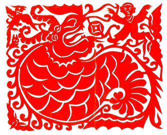 苗族民间剪纸形式也灵活多样,各具特色。如“中心构图式”,艺人主要在画面中心表现主题,四周讲究相应的对称协调,用不同的花木草虫来装饰搭配。这与“不完全对称”式那种以中轴为坐标,以量的平均分配来使画面产生稳定感、层次感和节奏感有所不同,突破了只讲求统一,不讲求变化的单调刻板的构图形式。又如“中心对称式”,这种形式使画面有一个中心磁场,强调一定程序的收敛,使画面的狮、象、虎、鹿及其他图案有个向心点。当然,也有一部分构图是“中心外射式”的,其画面显现着一种外射的动力,图案中的鸟兽有的面对外框直冲而来,有一种不受任何制约之感。显然,剪纸艺人在这种构图中要表现的是富有动态和生命力的物象。这种活生生的、蕴藏着生命暗示的形式,非常贴切地表现了苗族艺人那种大胆泼辣的性格。另外,苗族民间剪纸的构图形式还有整体式、米字式等多种形式。在有限的画面上变静为动,变实为虚,扩展空间,从而使剪纸作品浑厚而不凝滞,具有生命动态美的艺术效果。