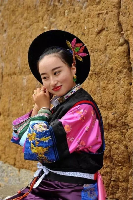 在白族女子的包头头饰上,蕴含着一个大家非常熟悉的词语:风花雪月。垂下的缨穗象征下关的风,艳丽的花饰象征上关的花,帽顶的洁白是苍山雪,弯弯的造型是洱海月,足见白族群众的精巧灵思。