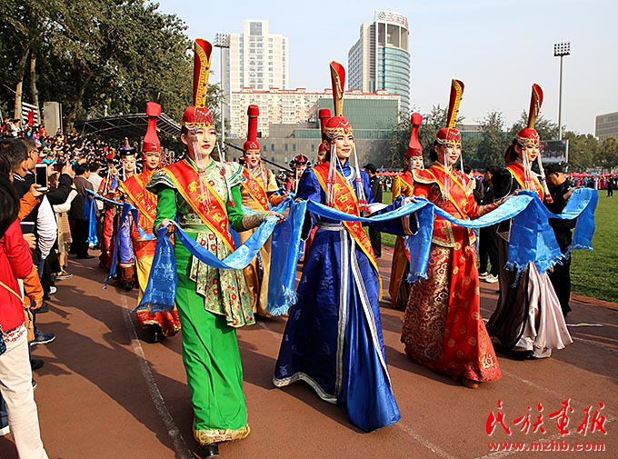 中央民族大学操场上热闹非凡。悠扬的马头琴声,飘香的奶酒,缤纷绚丽的蒙古族服饰,搏克、射箭等竞技活动以...