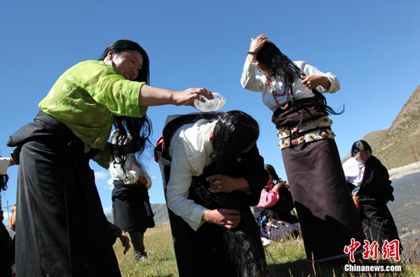 37岁的藏族青年旦增跟记者开玩笑,“自己看上去比实际年龄年轻,就是因为年年都来沐浴。”他觉得藏族民众初秋过“沐浴节”,能够提高抵抗力,与内地所讲的“春捂秋冻”本质相同。旦增介绍说,不能在流水中过“沐浴节”的藏族民众,会在月光照过的盆中净水洗头。
