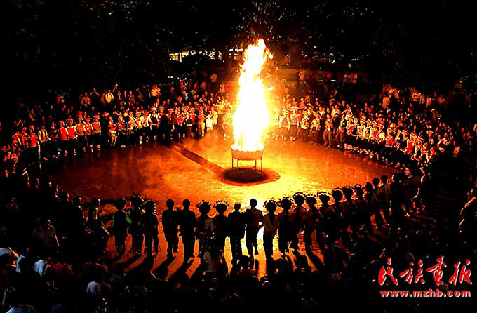 火把节是彝族传统节日中最普遍、最隆重、最富有民族特色的节日,一般在农历六月二十四至二十六举行,楚雄彝族火把节于2006年5月经国务院批准为第一批国家级非物质文化遗产保护项目。节日内容集民俗活动、经贸活动、文体活动和社交活动于一体,像磁石一样吸引着各族群众,许多人就是通过参加火把节认识了彝族,知道了楚雄彝族自治州的。节日期间,各族人民载歌载舞,耍火把、放焰火,火把节成了弘扬彝族文化、促进对外交流、开展经贸活动和各族人民大团结的盛会。