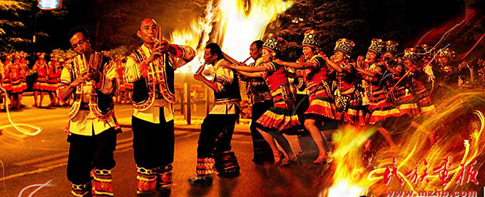 火把节上的葫芦笙舞狂欢(王立国 摄影)