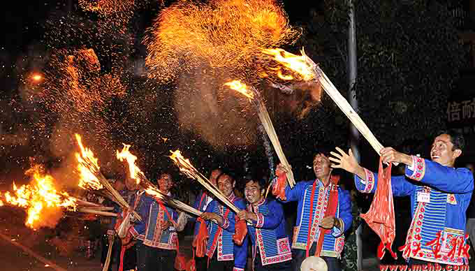 用松香“撒火把”,是火把节最令人兴奋的一个环节