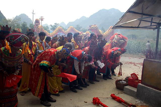 壮族霜降节头降的早晨,先要在戏台举行隆重的酬谢活动。人们进行祭拜,从请神、求神到送神,将壮族美好和谐的祈愿寄托在美好的自然事物身上,以表达对自然之神的崇敬之情,表达祈盼五谷丰登的良好愿望。近年还增加了祈福长寿的内容。