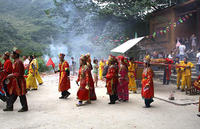 在酬谢自然之神后,由祭司念诵祭文,纪念民族英雄瓦氏夫人,颂扬瓦氏夫人率领将士打击倭寇的英雄事迹,传授民族历史知识,宣扬保卫家园、谋求平安的民族精神。