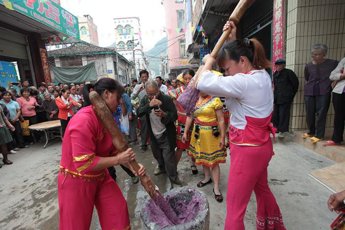 这一节期,各家各户都准备“糍那”、“迎霜粽”等各种特色食品,招待亲朋好友,人们以有朋友到家宴饮为荣。