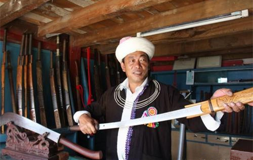 景颇族家家户户有长刀,景颇族男人身不离刀。长刀是男人之魂。