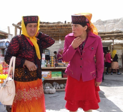 塔吉克妇女喜穿纯红色或装饰花边的大紫色调的连衣裙。有的红布面料上是白色小印花,有的在裙摆上是绣花。连衣裙腰身贴体,裙子宽大。上身套黑绒背心,下穿长裤。不仅重视胸前、领子、袖口和衣后的装饰,讲究整体协调。衣后缀串珠、银元扣、宝石等小件,串成两条如辫发式的装饰带。