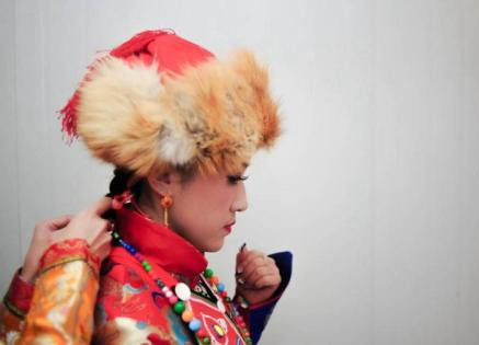 从那以后,裕固族姑娘出嫁就借用这顶“吐鲁格排尔克”成亲配对,不管春夏秋冬结婚,新娘提前三天就要戴在头上。一直到现在,还保留着这个习俗。
