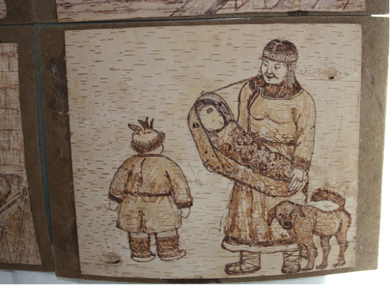 鄂伦春族传统养育习俗桦皮画 刘军拍摄