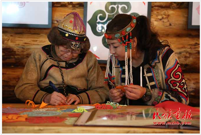 在乌力楞景区“非遗”传承基地,游客在亲身体验民族文化的魅力