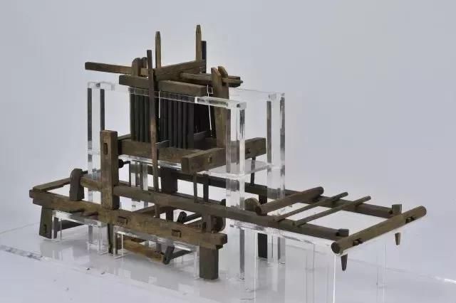 投梭:脚变换着踩竖脚竿将16面综框轮换升降,双手左右开弓投梭,其间每投一梭要用扣压纬。