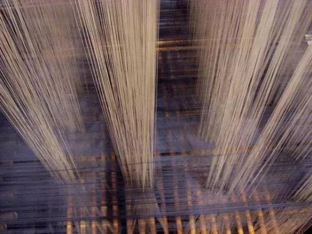 转下曲:织工经常必做的一项检查。下到一米深的机坑,转动下曲签防止纤线断裂和缠绕。