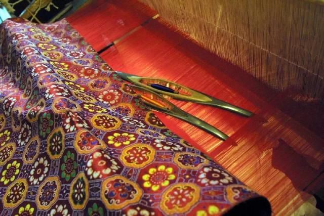 打结:这是织工的基本技能,也是学习手工织锦的第一道关。在一分钟内,用极细的丝线打出十二个结并剪掉线头,使其看上去像从来没断的才能及格。