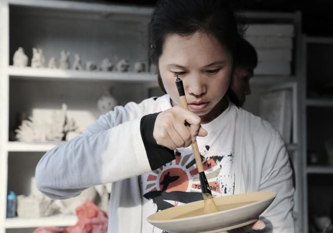 2008年在湖南醴陵进行釉下彩绘创作